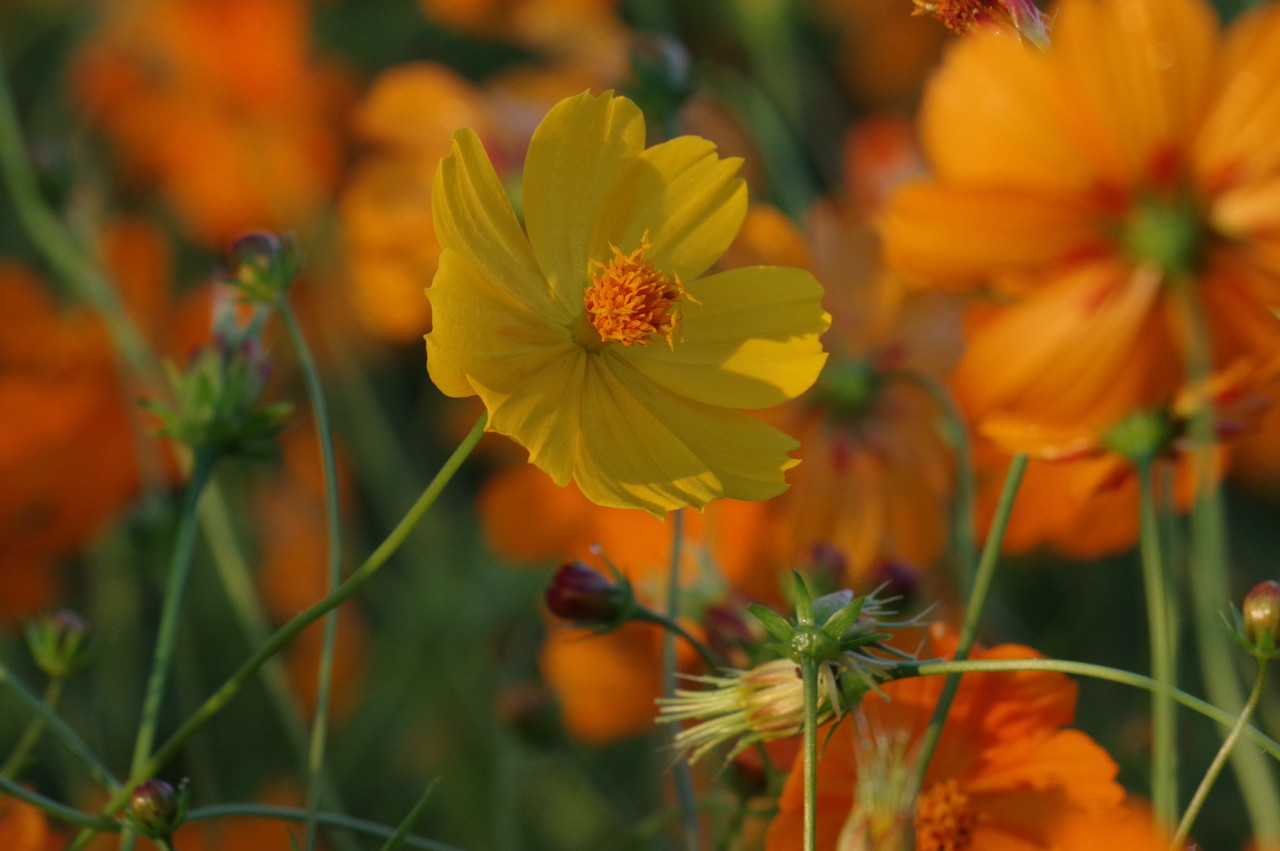 一株い色違い?のキバナコスモス。