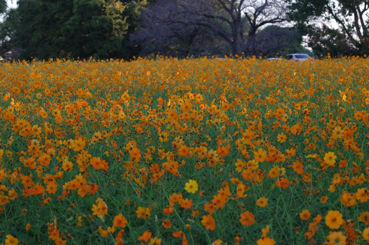 入り口に一番近い南エリアのキバナコスモスが綺麗!。感動ものです。植栽面積も広くて、満開状態。