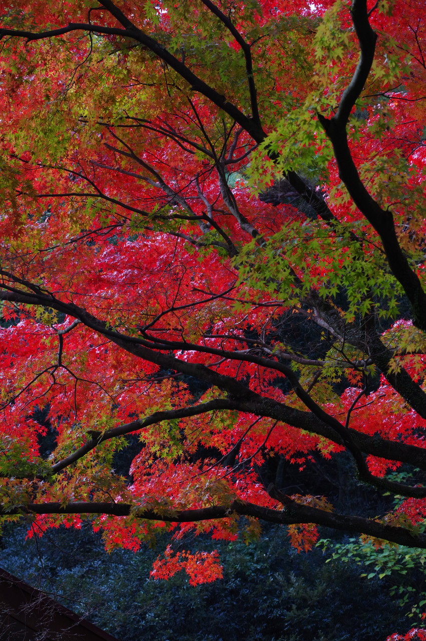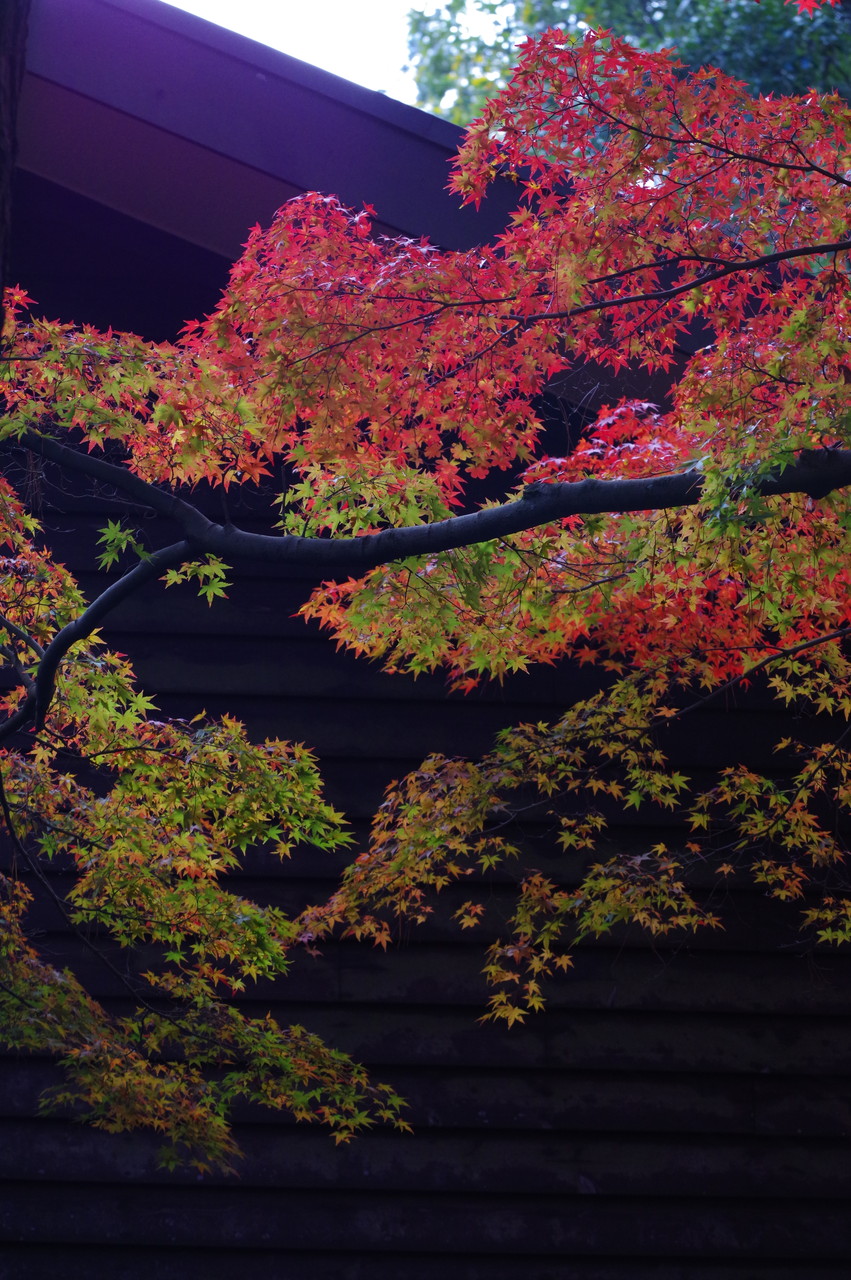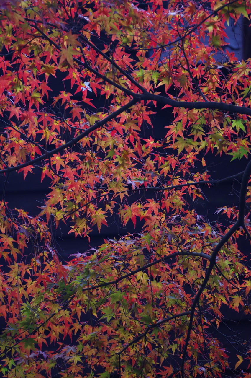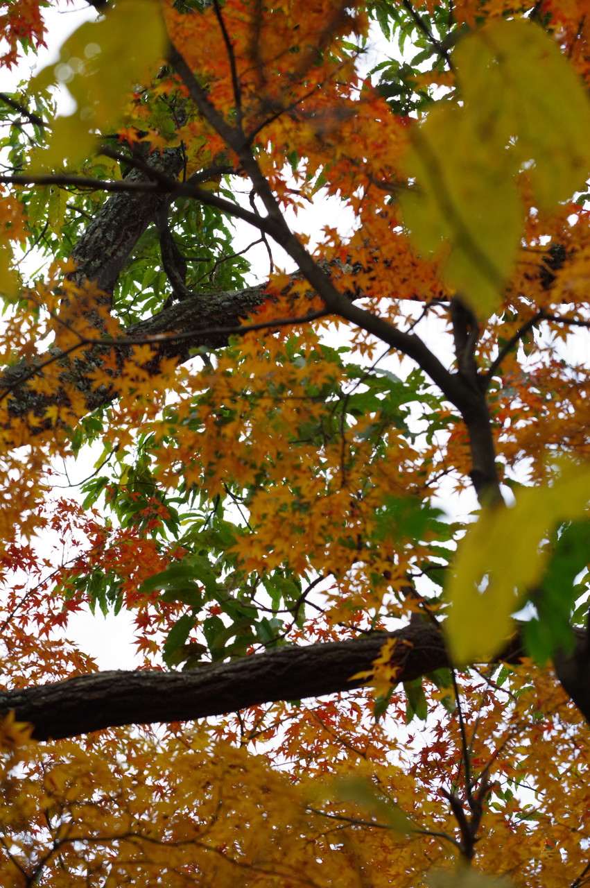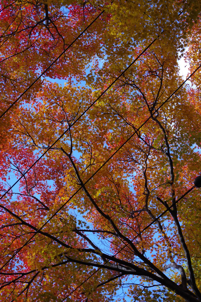 ㉓朝は薄暗くてスナップしなかった紅葉を見上げて。