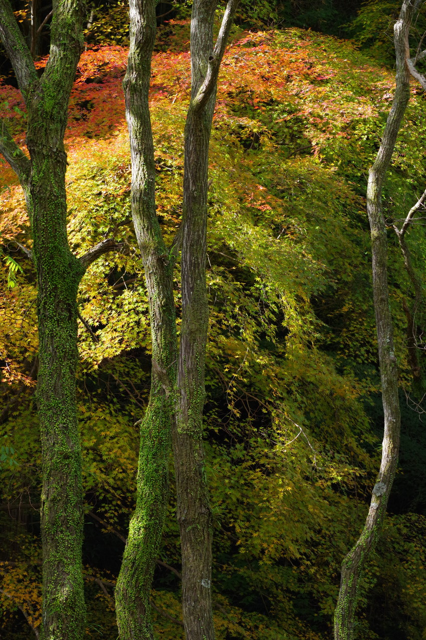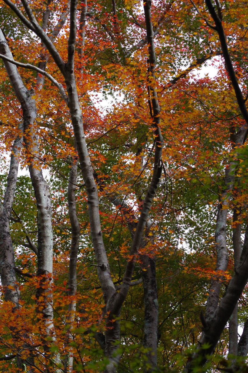⑩切り上げて、大師道の降り口へ向かいます。途中の紅葉。10時32分撮。