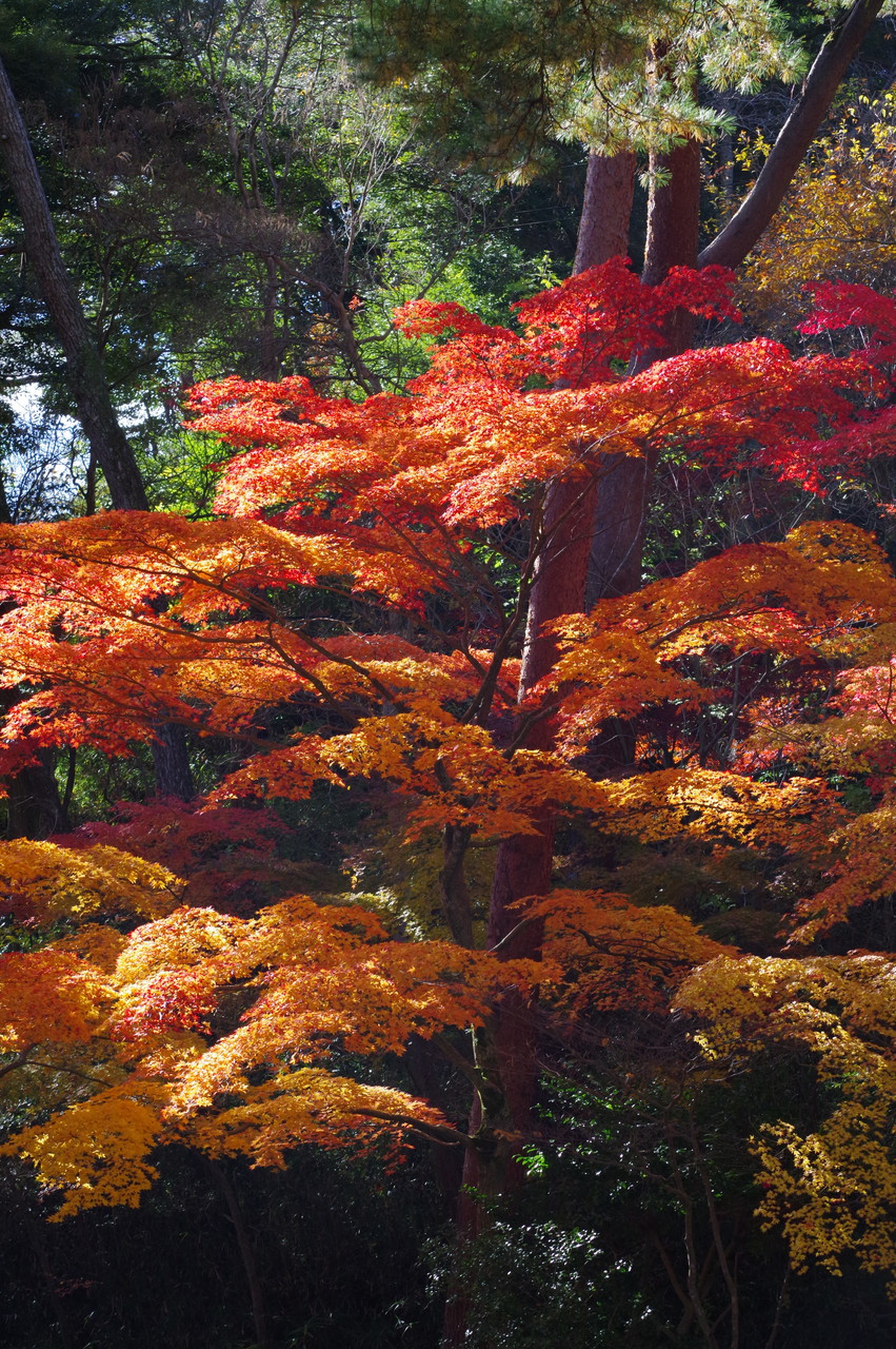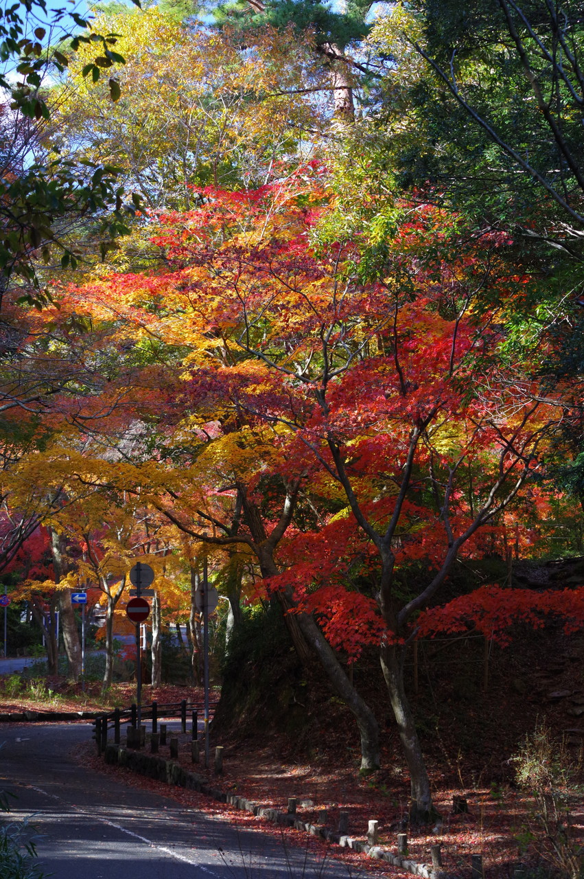 しかし、綺麗に紅葉する所なんですけどもね。バックが事務所の側壁で暗めですし、その奥が森ですから紅葉が映えます。満足のいくスナップが撮れましたから、再度公園を後にして大師道を下り帰宅です。