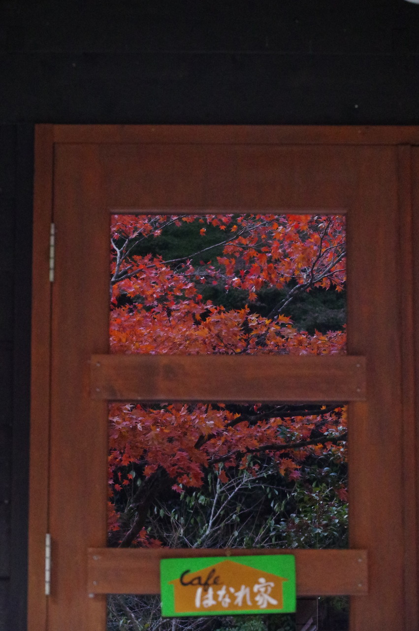 ⑱鯰学舎とCafe「離れ家」のある中間点の紅葉を見上げて。