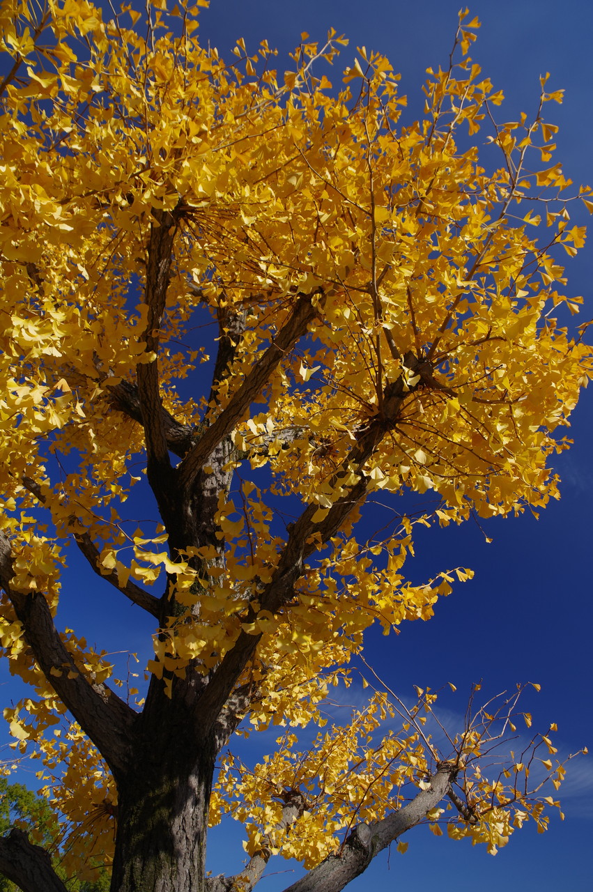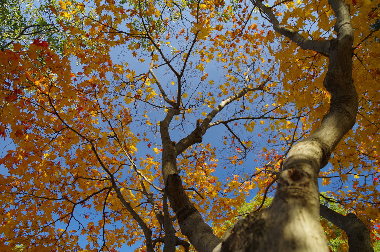 図書館で本を借りて、楠公さん(湊川神社)へ。神社裏の黄葉。10時43分撮。