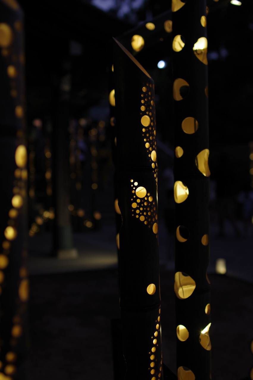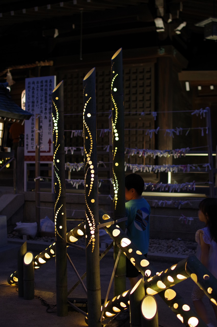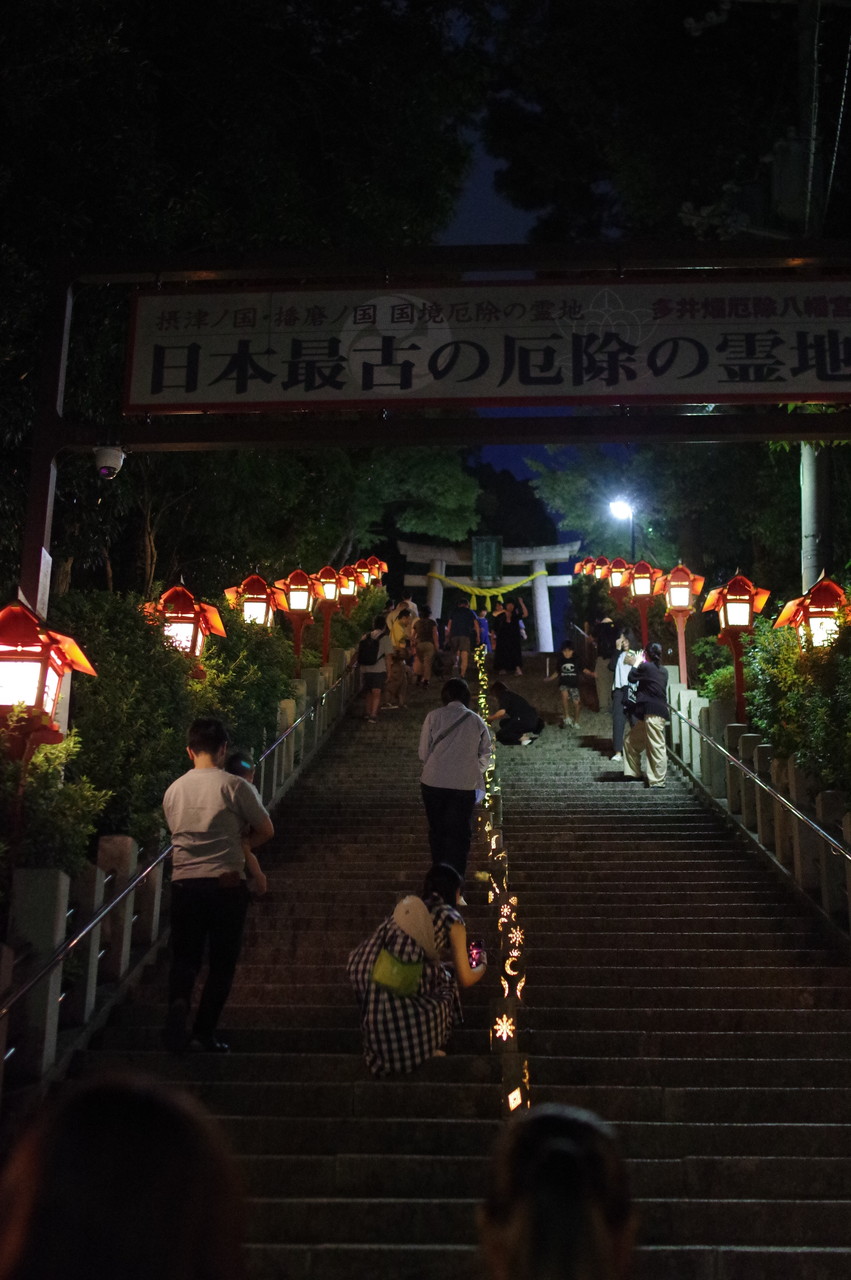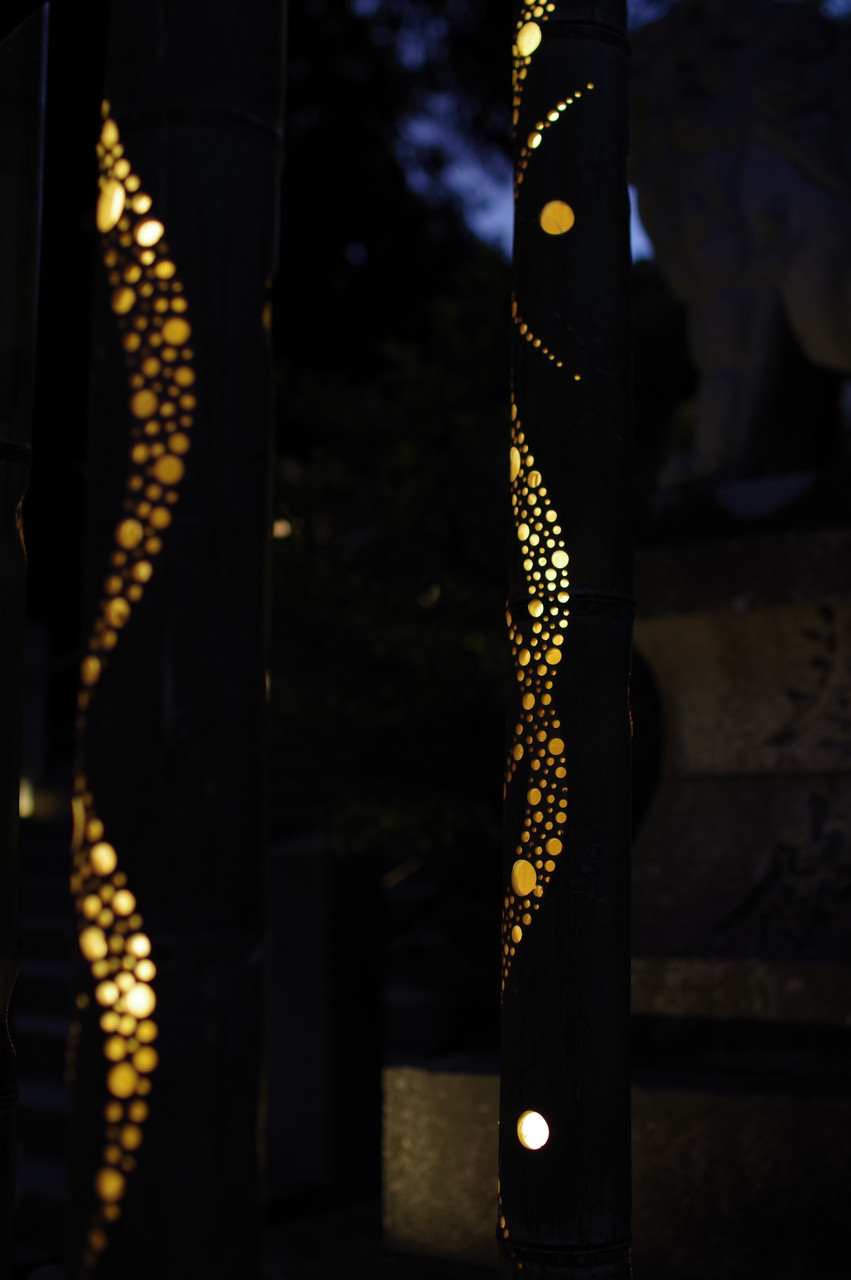めったに昼からのお写ん歩、ましてや夜のお写ん歩には出かけないのですが、今回は日本最古の厄除け霊地と言われている、多井畑厄神で「竹あかり」アートプロジェクト(9/20~9/23(17時から21時まで))が開催されていましたから、数年前に老眼大学の湖南三山の紅葉散策バス旅行で行った長寿寺で開催されていた竹あかりアートがすごく幽玄で綺麗だったと記憶に残っていて、厄神さんのはどうかなっと思い、カメラを携えて3時過ぎに出かけて来ました。