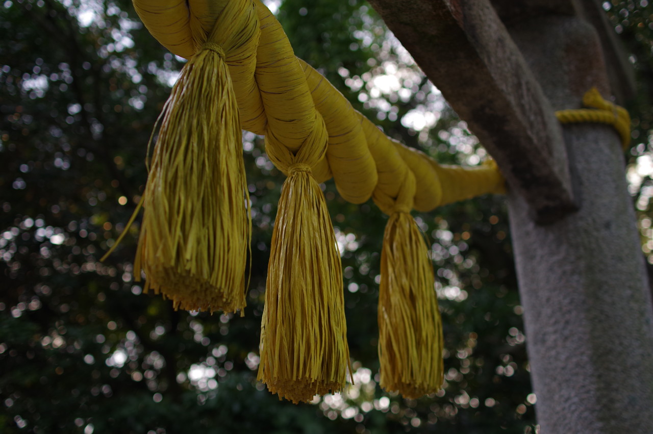 独特な金色の注連縄をくぐり石段を下りて、