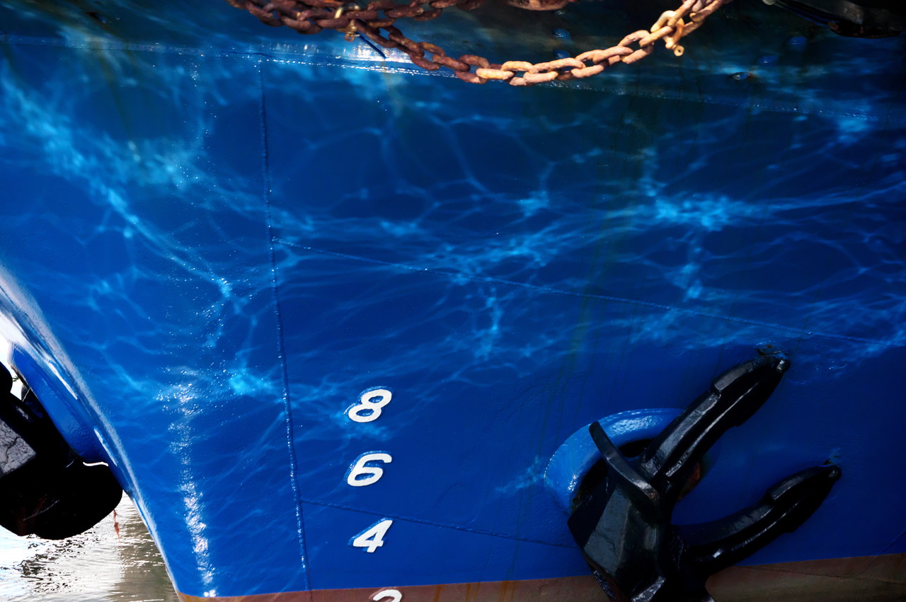 ①のグループ。主題は舳先下への波のきらめきの反射。広角・中間・望遠