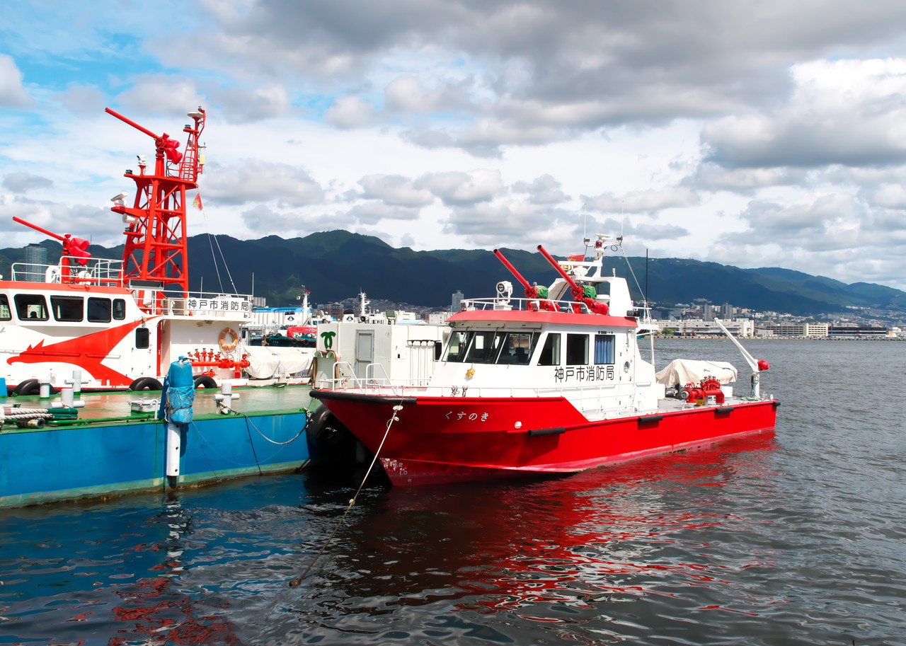 ②グループは消防艇の映り込みと波の反射。広角・中間・望遠