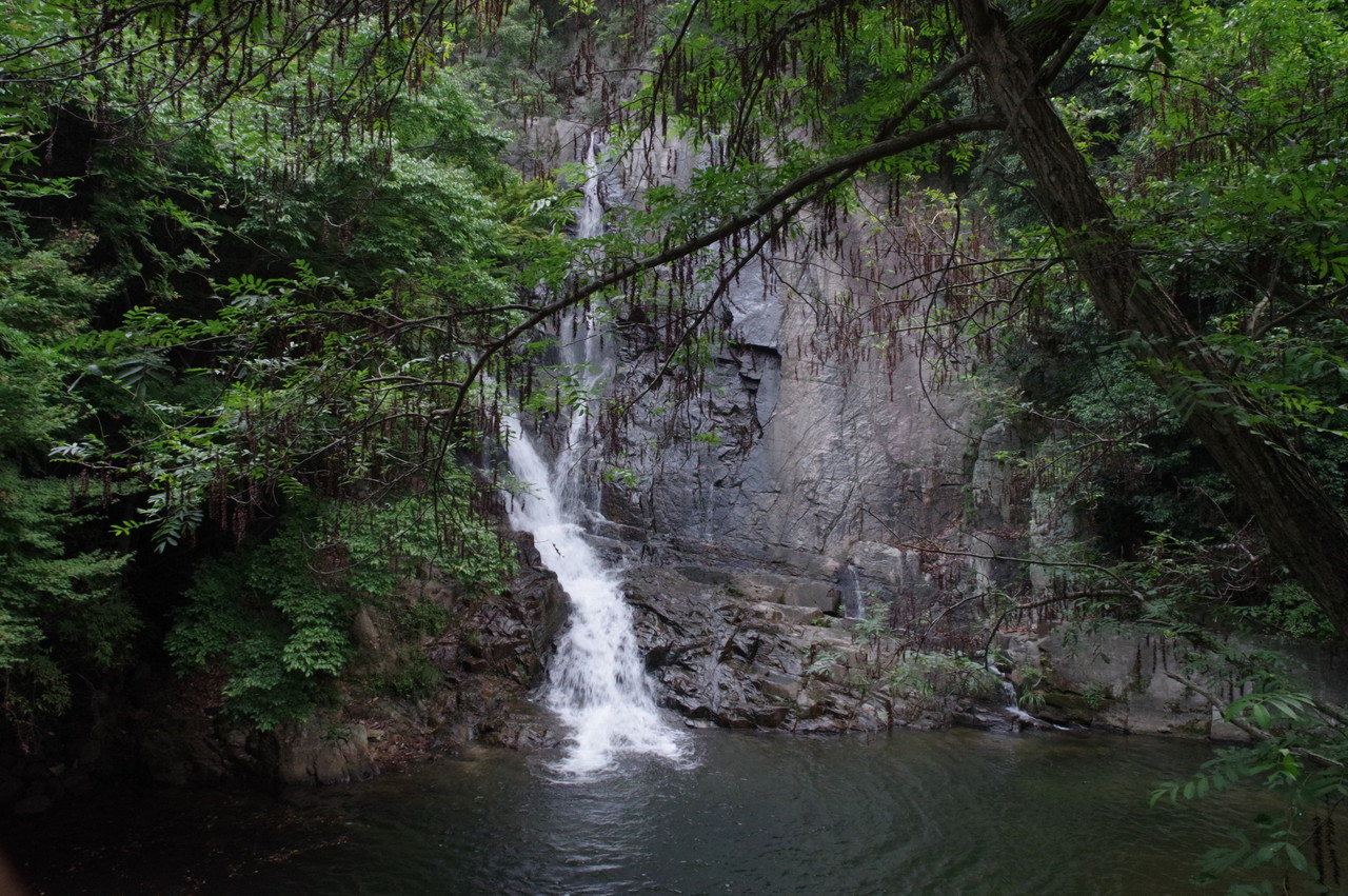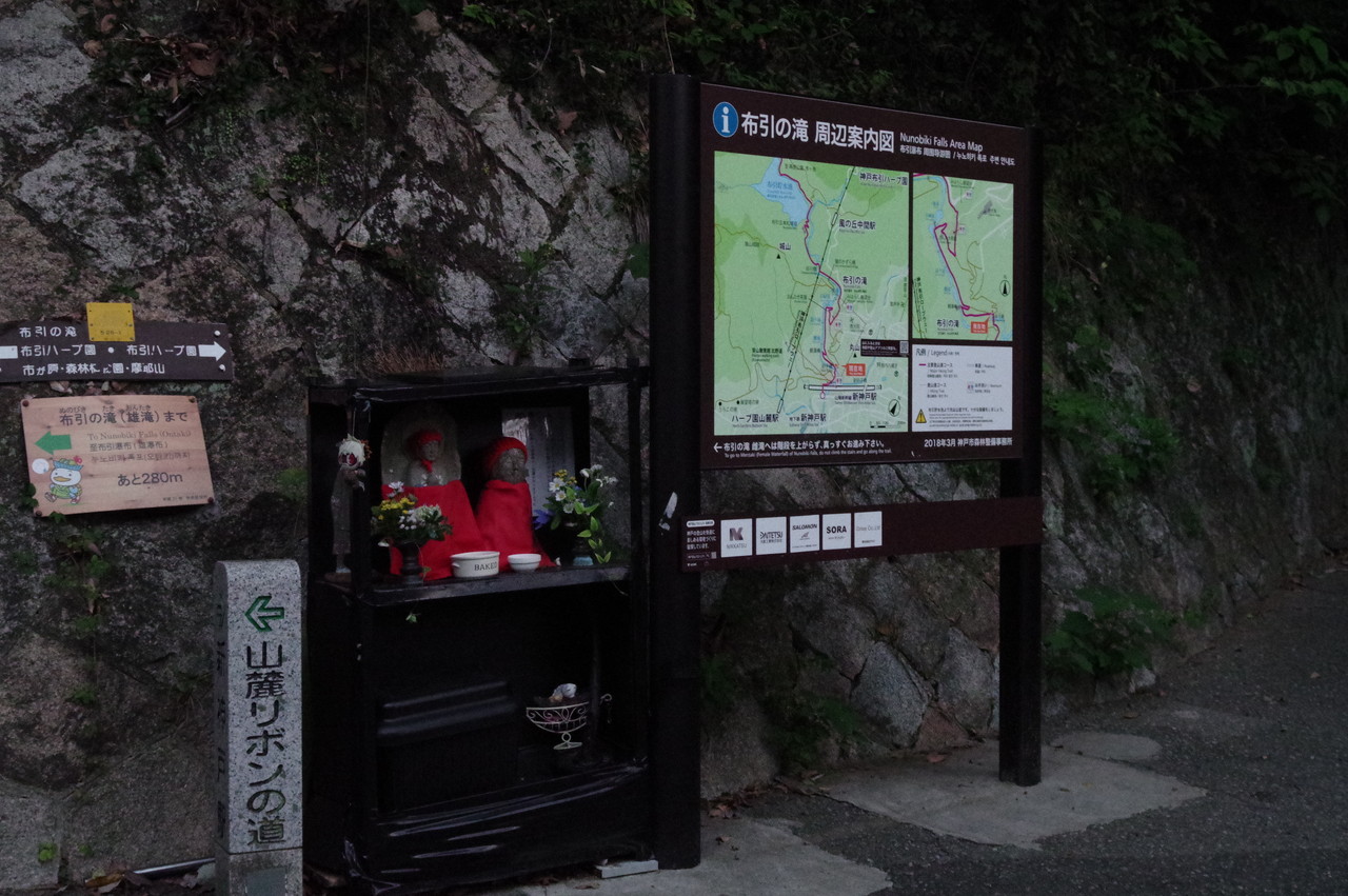 10月からの秋本番のロングハイキング完歩の為の朝練に、朝一の地下鉄で新神戸駅へ。布引の滝を巡って、市ヶ原から再度公園へ。修法ヶ原池畔で休憩。大師道を下って地下鉄県庁前駅へ。山麓リボンの道を布引雌滝へ。6時05分撮。