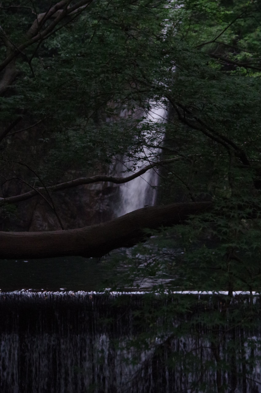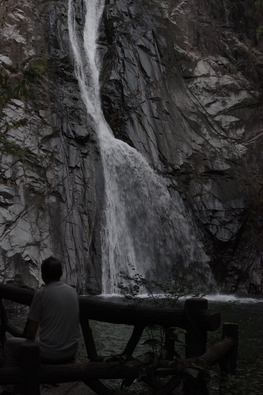 雄滝とベンチで休憩されている人を借景に。6時18分撮。