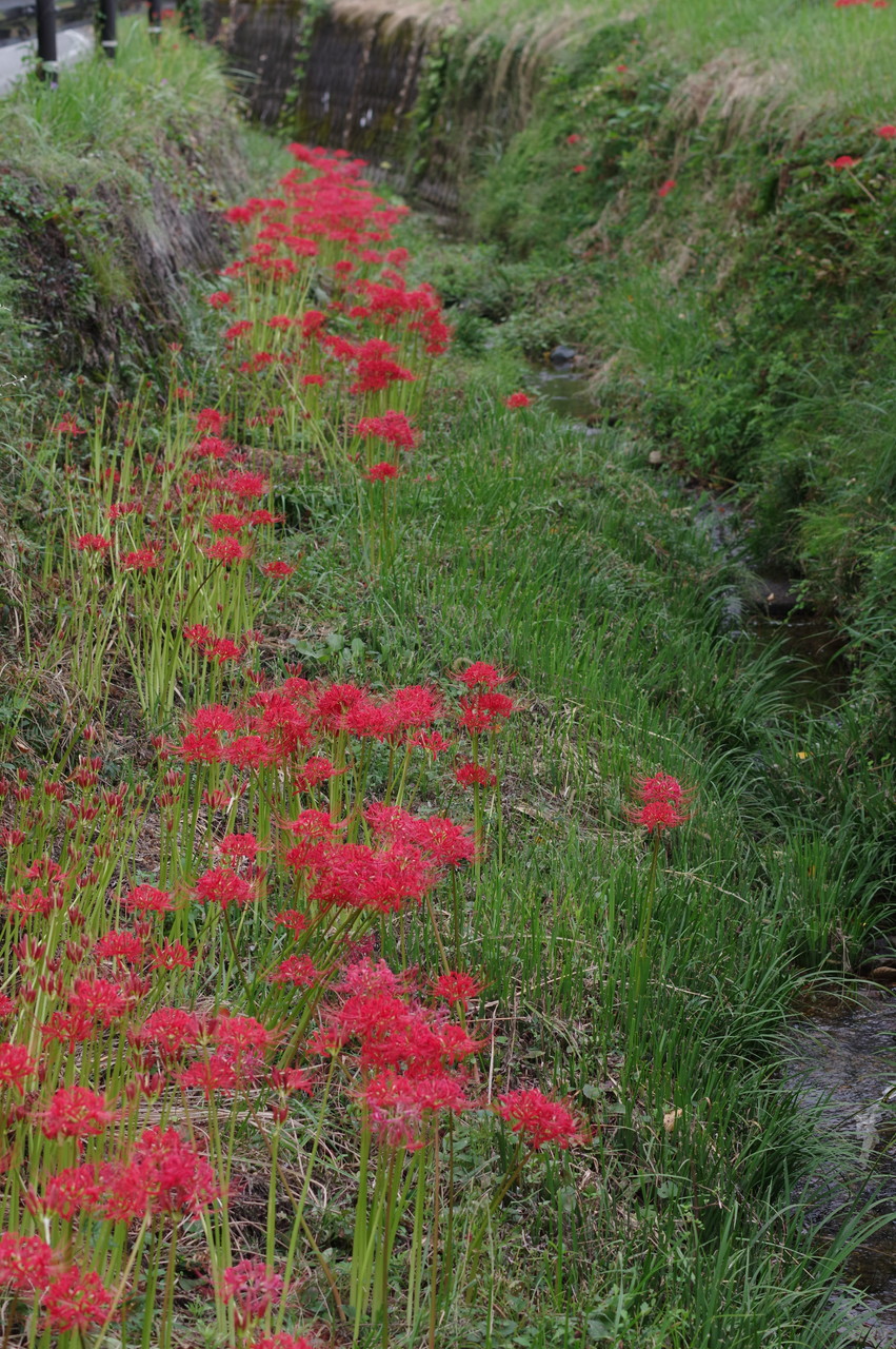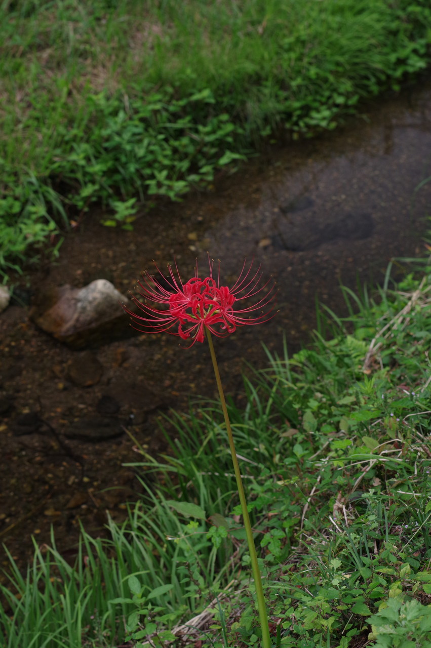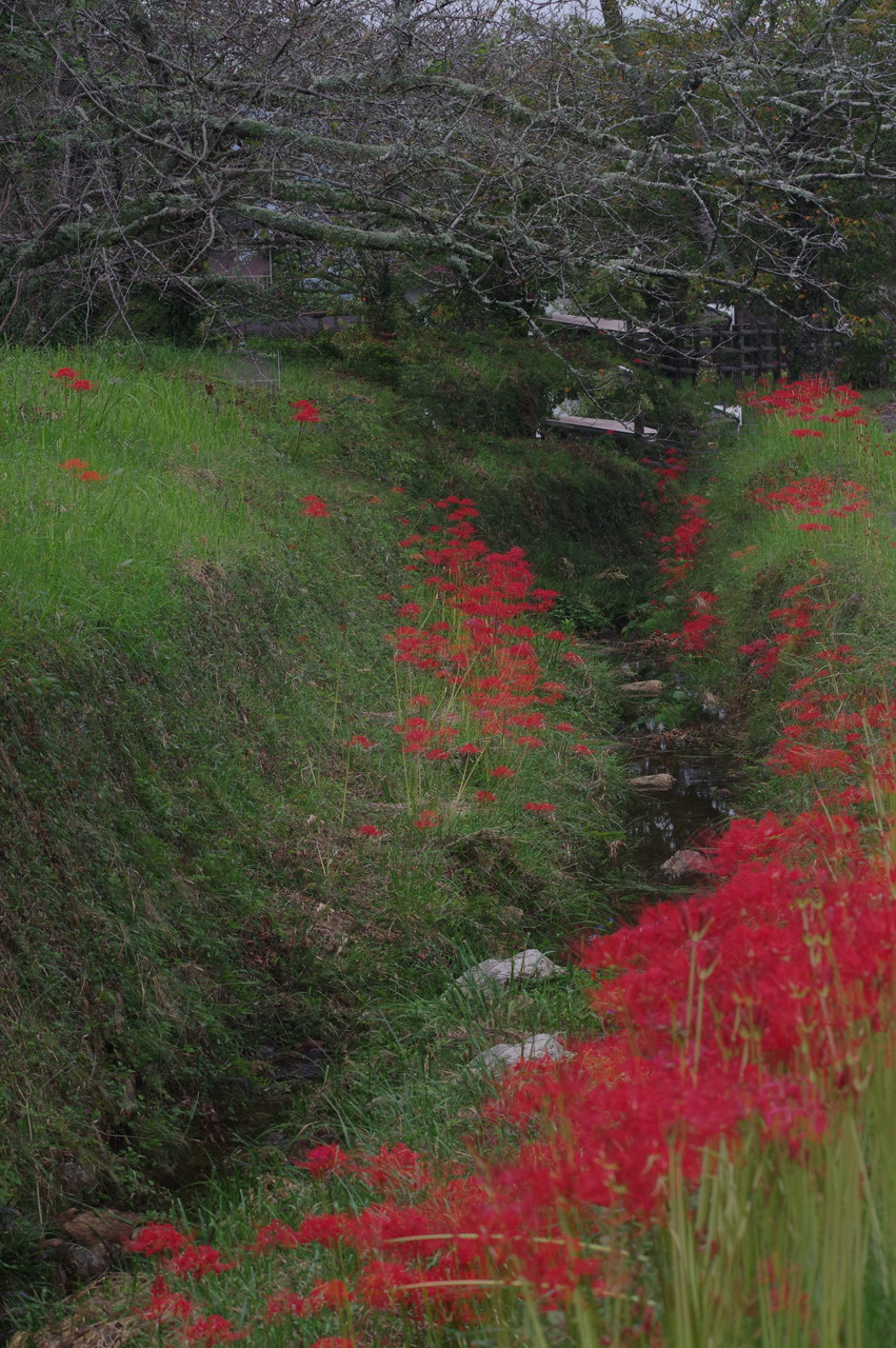 とりあえず、駄目もとで、水分れの川沿いの彼岸花を求めて行ってみました。何とか彼岸花に出会えましたよ。小川沿いでロケーション良し?。撮り方悪し・・。(毎度のことです)