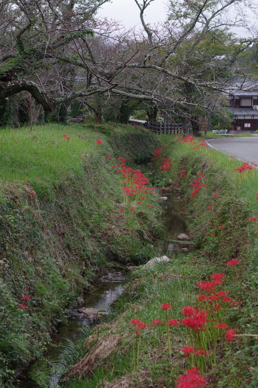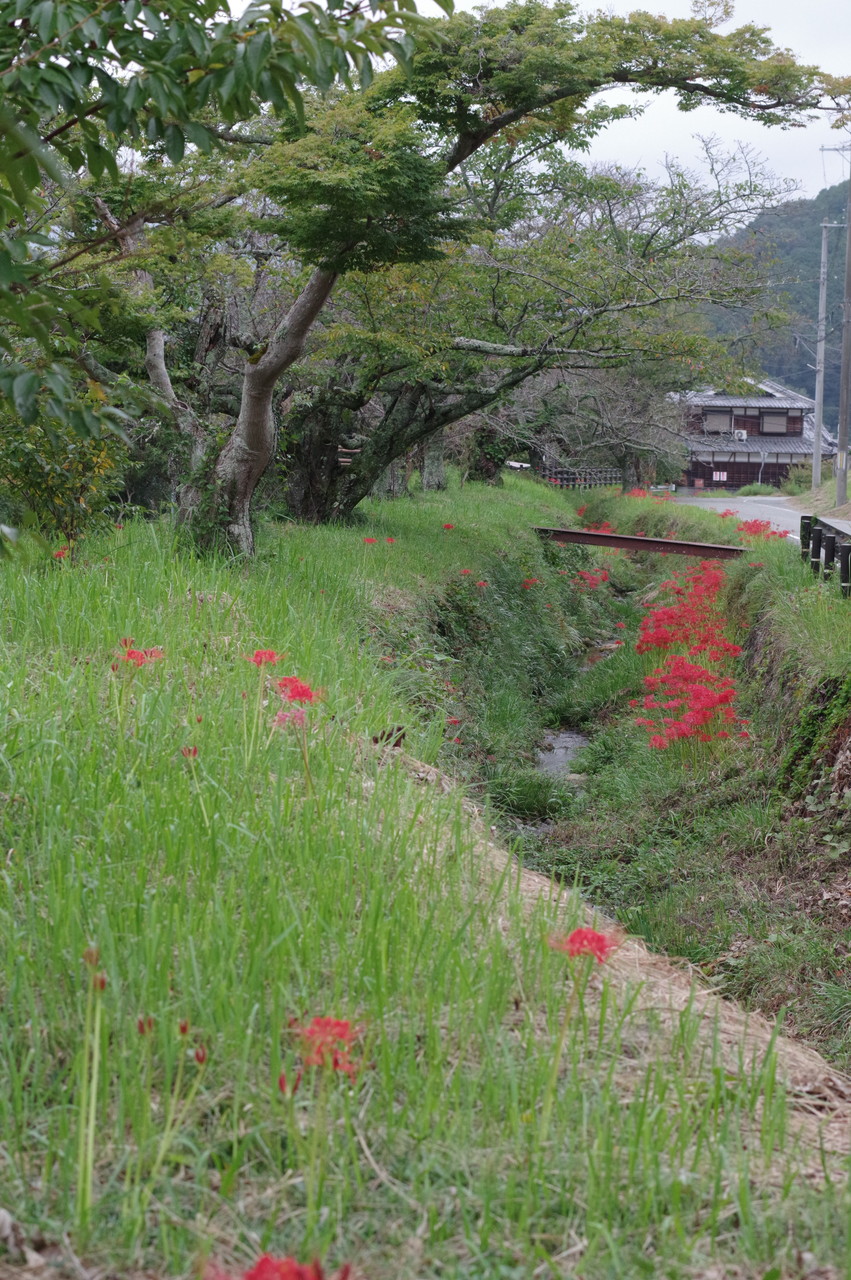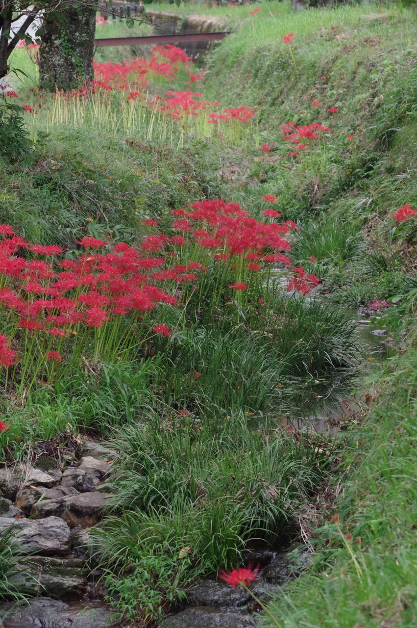 分水界まで来ました。ここまで来ると彼岸花は少なくなりますが、川筋は桜の時期になると一大景勝地。8時50分撮。