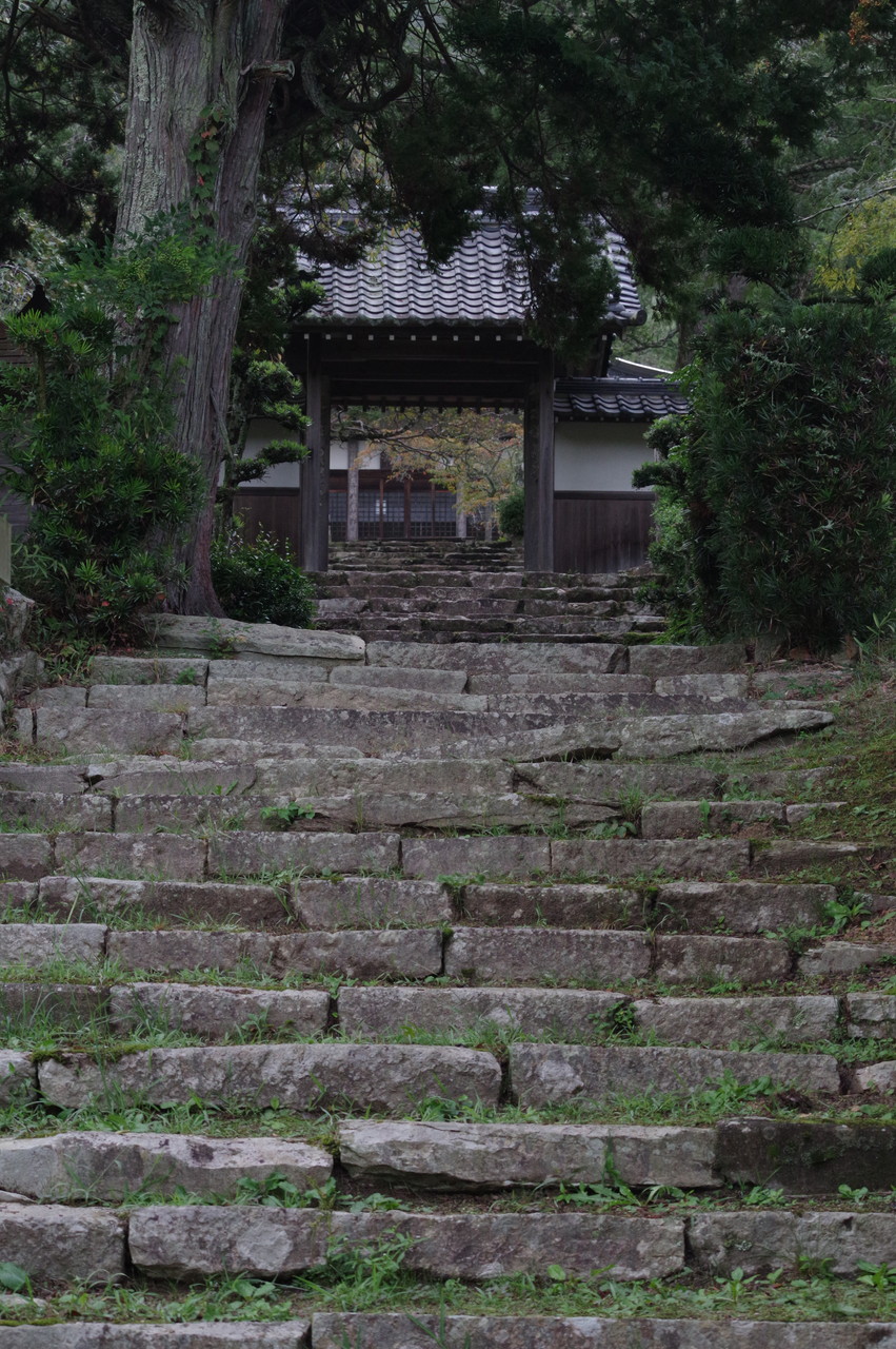 先ずは、大舟寺境内へ。本堂にお参りして、第一目的の茅葺き屋根の鐘楼裏へ回ります。