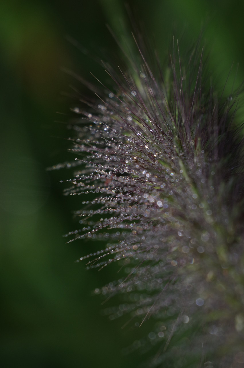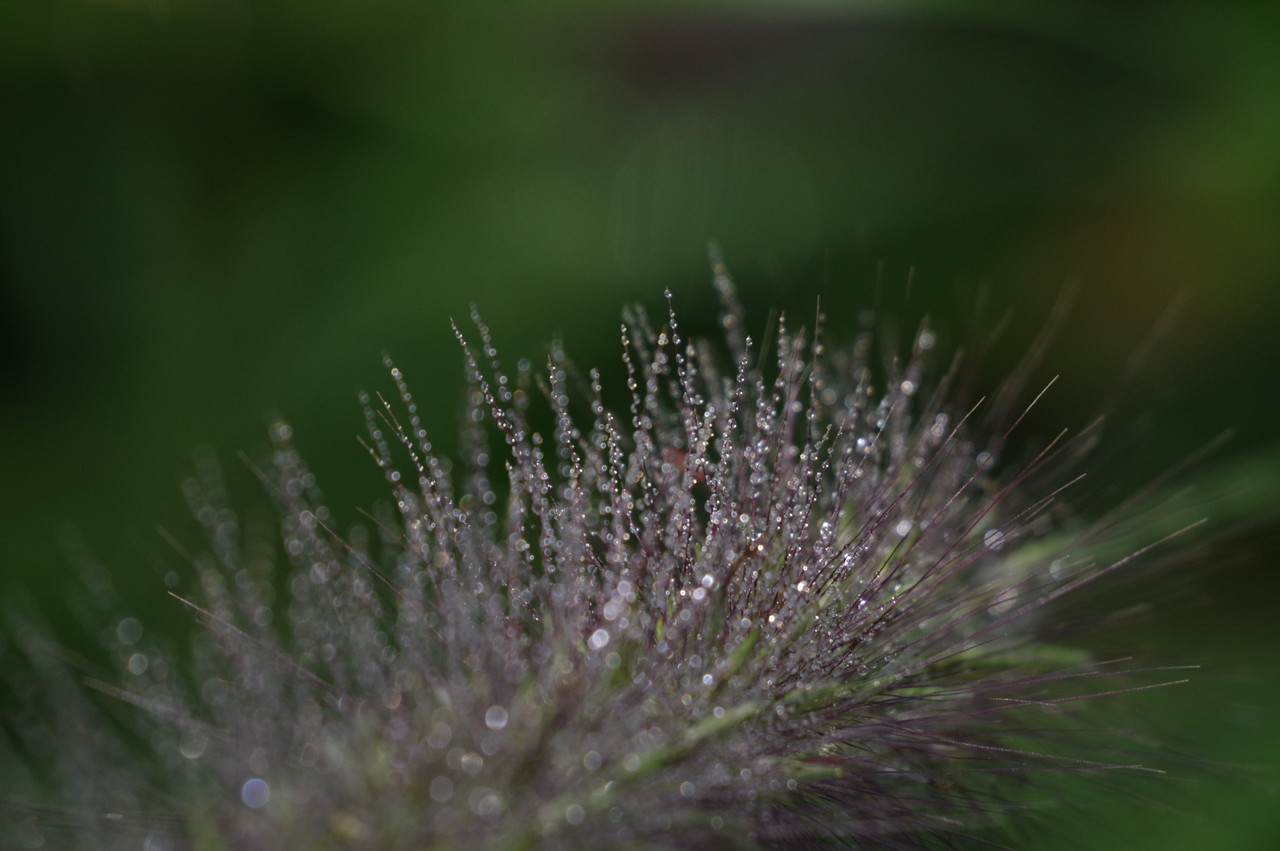 チカラシバの穂にも朝露がビッシリと。8時00分撮。