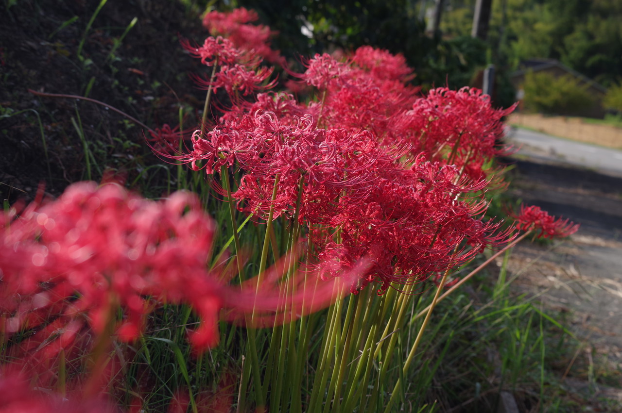 大舟寺に向かう途中の道すがらにも彼岸花が。7時00分撮。